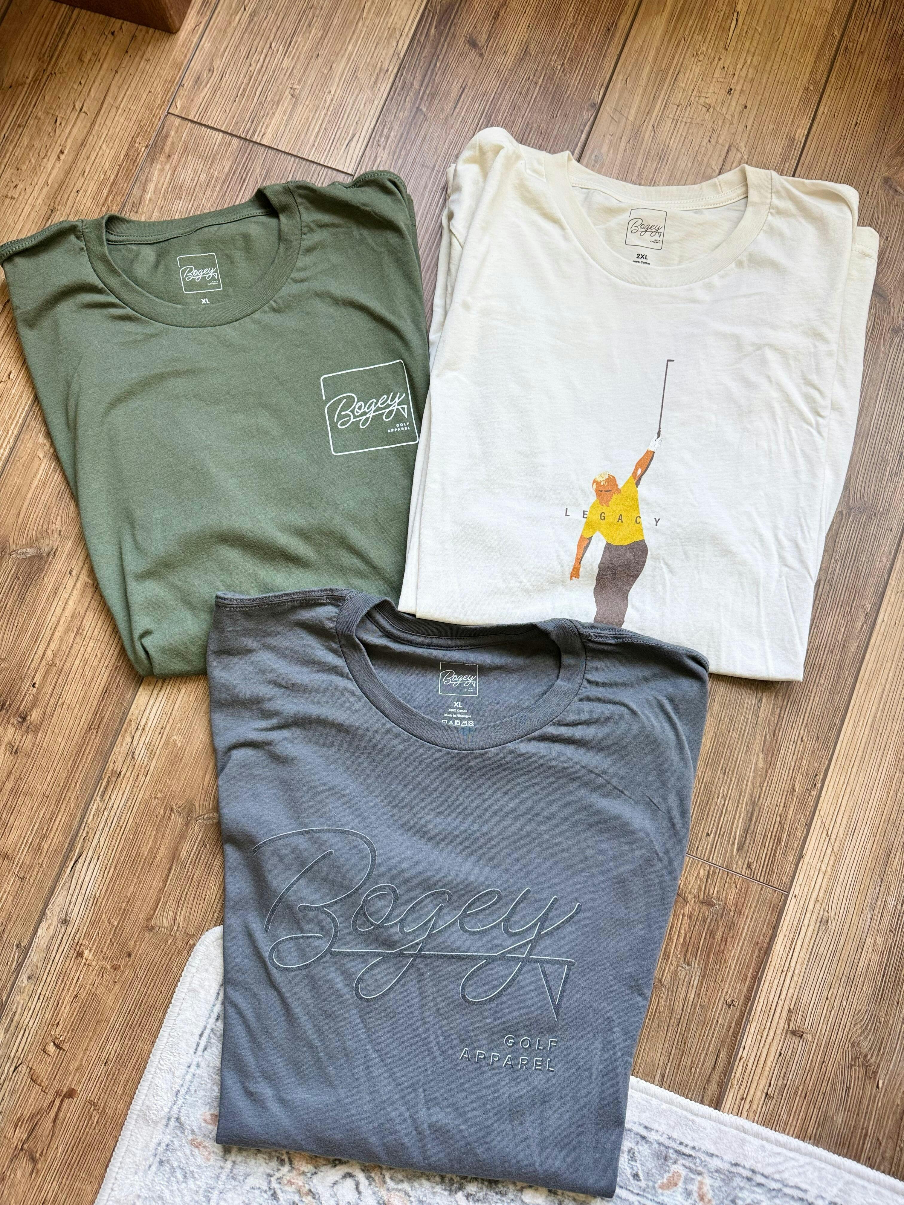 A clean and simple tee featuring our classic “Bogey Golf Apparel” logo.